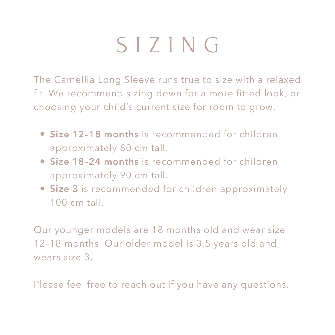 A sweet and timeless layering piece, our Camellia Long Sleeve is made from soft, breathable ribbed knit with delicate ruffle details at the cuffs and neckline. Perfect for cooler days or layering under dresses and jumpsuits, it pairs beautifully with the Magnolia Denim Set and the Sweetheart Sundress. Crafted for comfort and style, it moves with your little one through all their everyday adventures.
