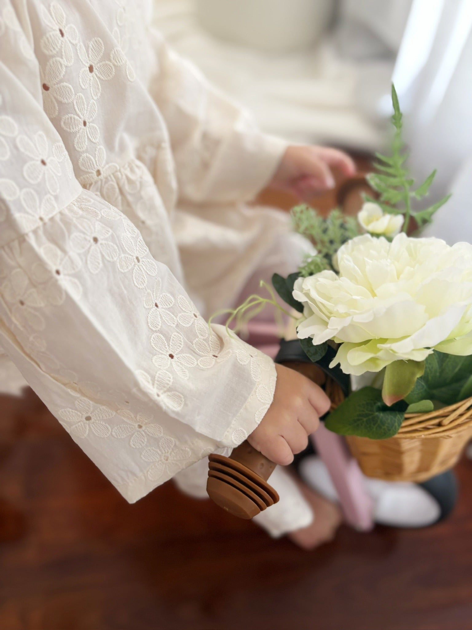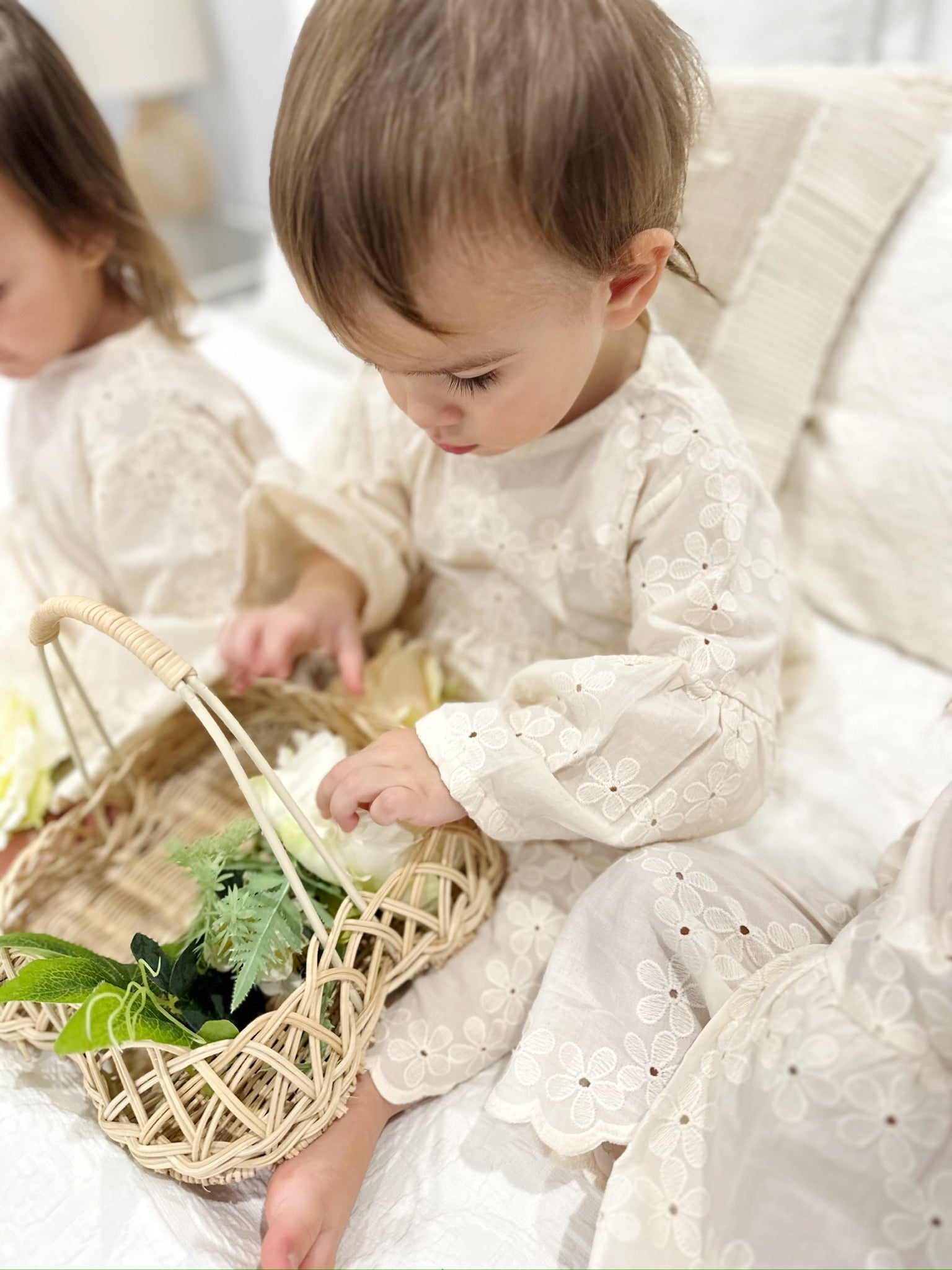 Soft, sweet, and effortlessly charming, our Daisy Bloom Set features delicate cream floral embroidery. Perfect for sunny days filled with giggles, playtime, and all the little adventures that make childhood so magical. Crafted from 100% cotton, this lightweight, breathable set keeps your child comfortable and stylish every step of the way.