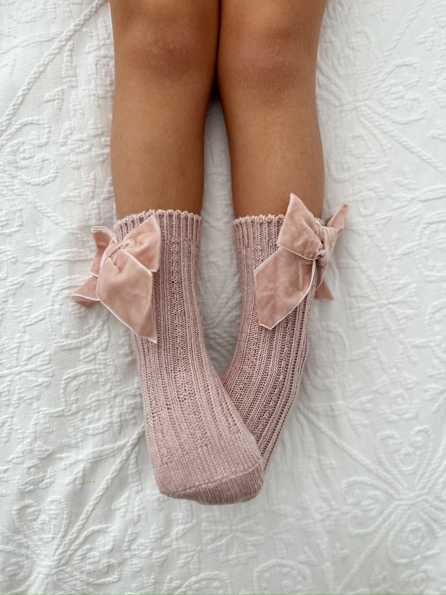 Velvet Bow Socks (Blush)